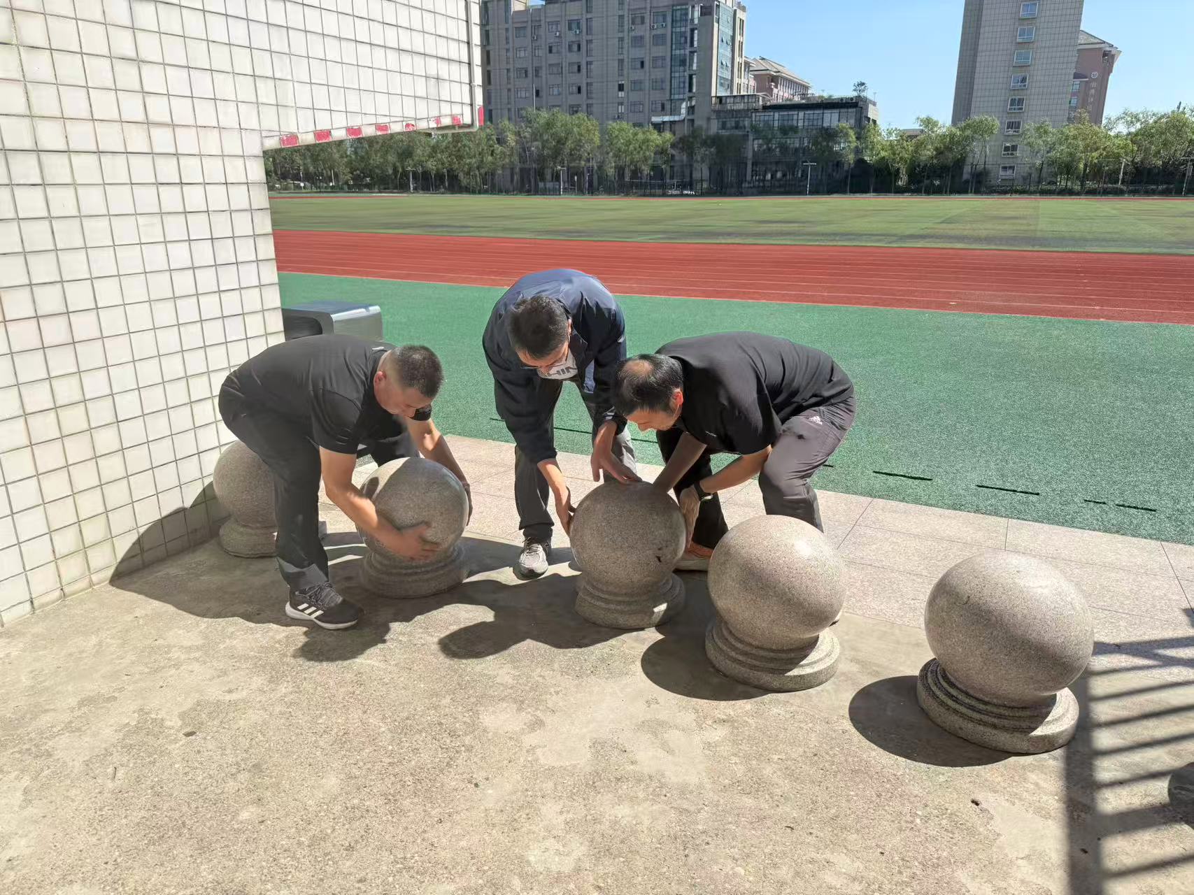 检查过程中,深入各个场馆,进行了多维度排查:篮球架、足球门、排球柱、羽毛球网柱、单双杠、国防教育中心等大型固定器材的稳固性进行了逐一摇测和检查,对照明设备、消防器材、应急通道、疏散标识等关键安全节点进行检查,确保符合安全规范。