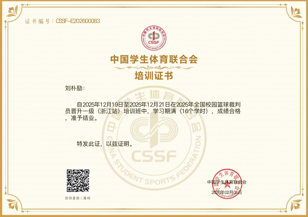 国家一级裁判是篮球执裁领域的高级别认证,考核标准严、含金量高,我校运动队在日常训练中,通过专题理论培训、模拟实景执裁、各类赛事历练等方式,全方位提升学生的专业执裁能力与综合职业素养,为学生体育专业发展搭建优质平台。此次获评篮球一级裁判员,既是学生个人不懈努力的成果,更是我校长期深耕体育竞技育人的重要成效。