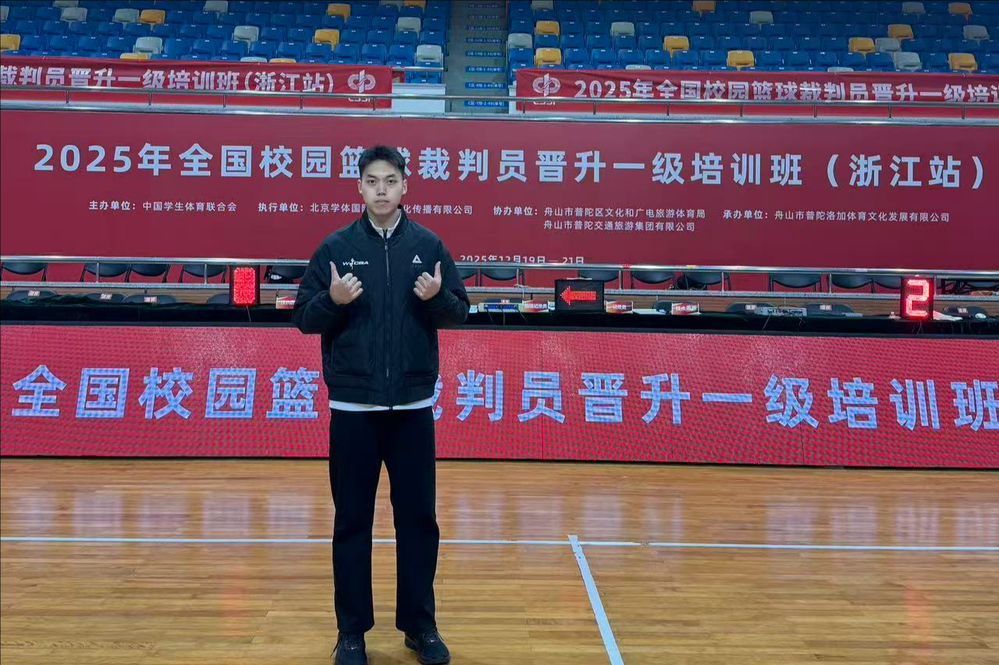 近日,我校篮球队队员、高铁2402班刘朴励同学顺利通过国家一级篮球裁判员考核,实现我校篮球裁判人才培养领域的零突破。
